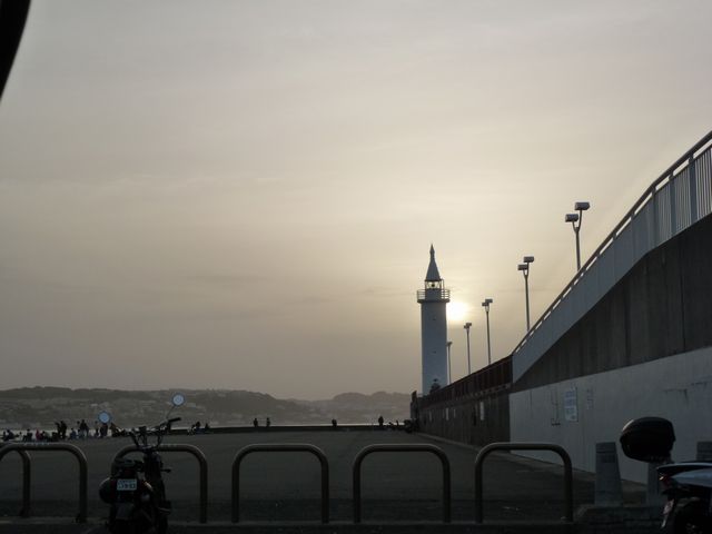 、海ほたるで日の出を見ました。朝食をとって、いざ出発!