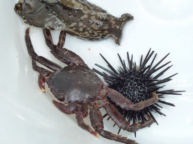 しか~し、、磯遊びにて、、 カニ、 アメフラシ、 ウニ、 を ゲット~