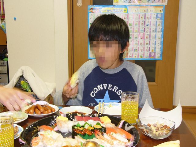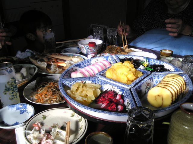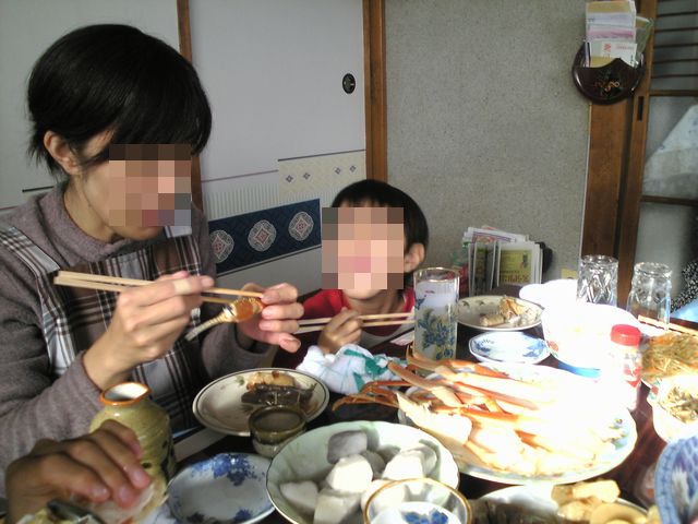 元日は、ジジババ家でおせちやカニ、寿司をいただきました。