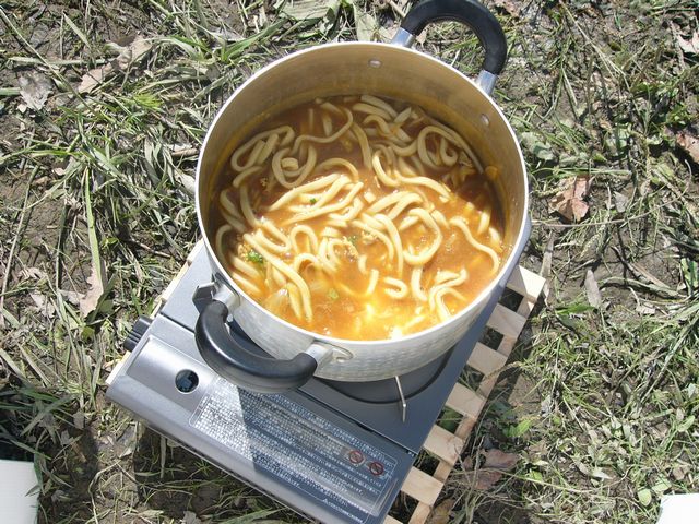 カセットコンロを持っていって普通に作ってみました。